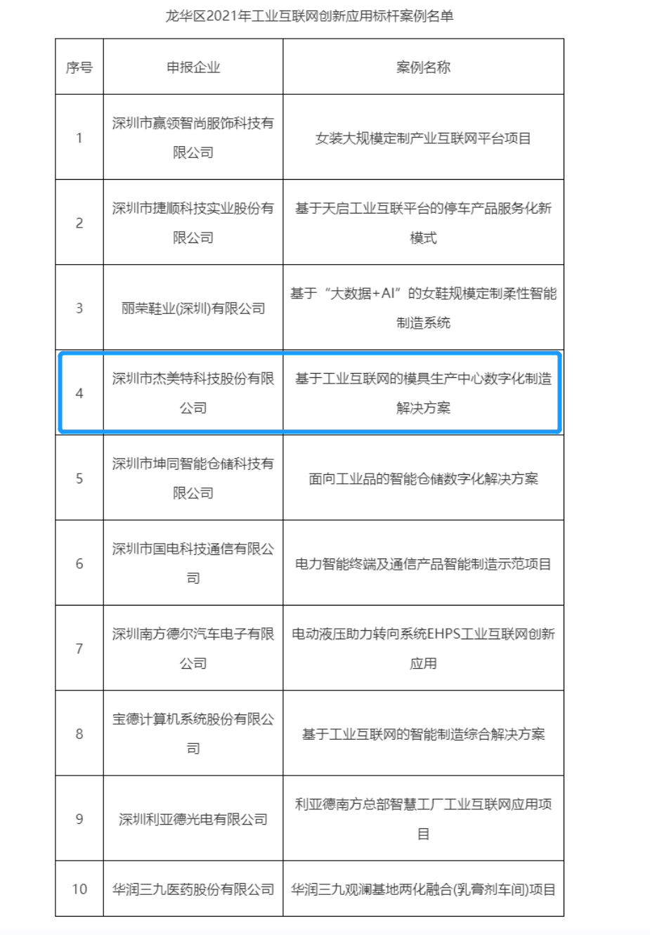本次入選龍華區(qū)“2021年工業(yè)互聯(lián)網(wǎng)十大創(chuàng)新應(yīng)用標(biāo)桿案例”,是對(duì)杰美特在數(shù)字化轉(zhuǎn)型的先行引領(lǐng)作用的高度認(rèn)可。